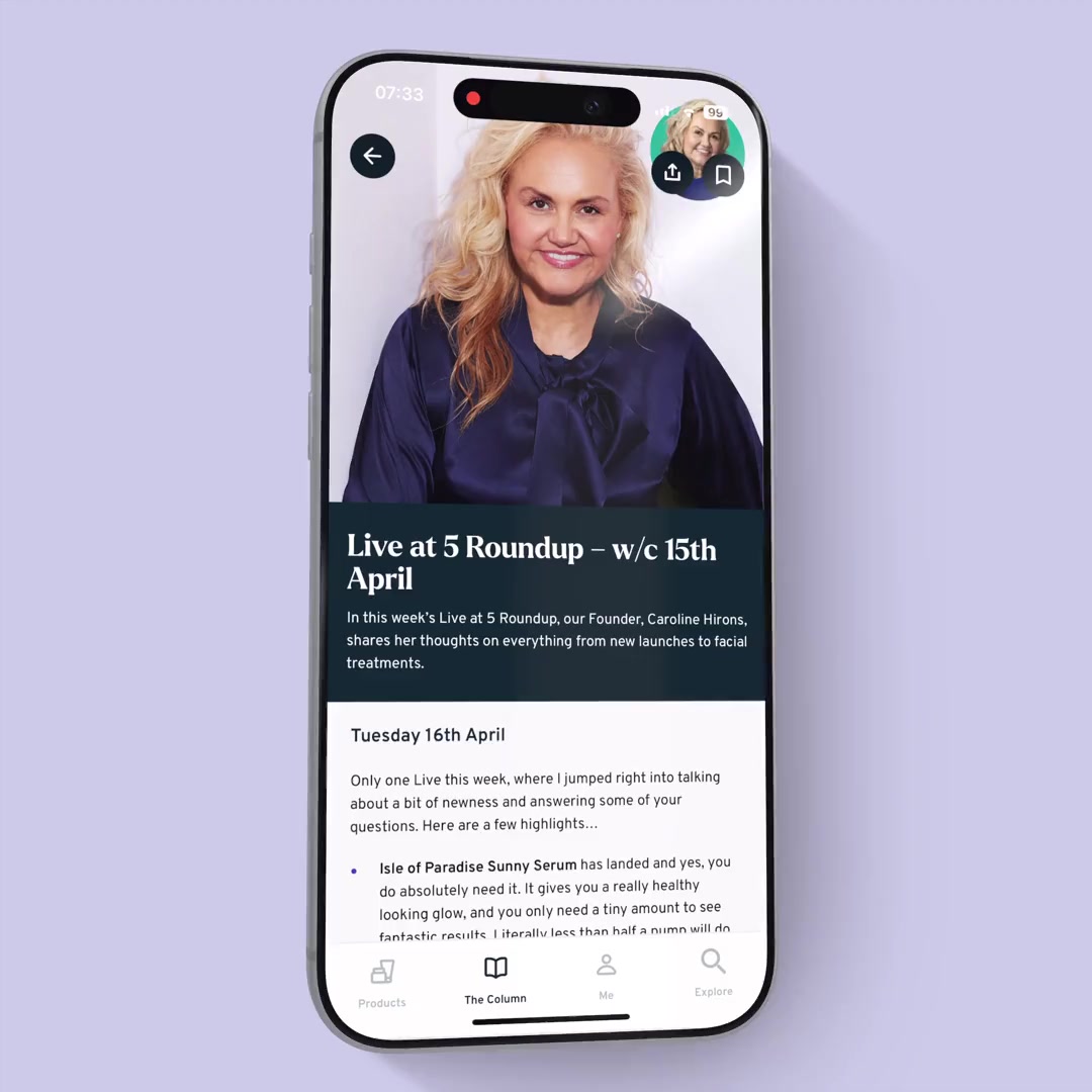 A skincare app that tells you what products you should actually be using, based on your skin. Founded by Caroline Hirons. Featured as Apple's App of the Day multiple times.